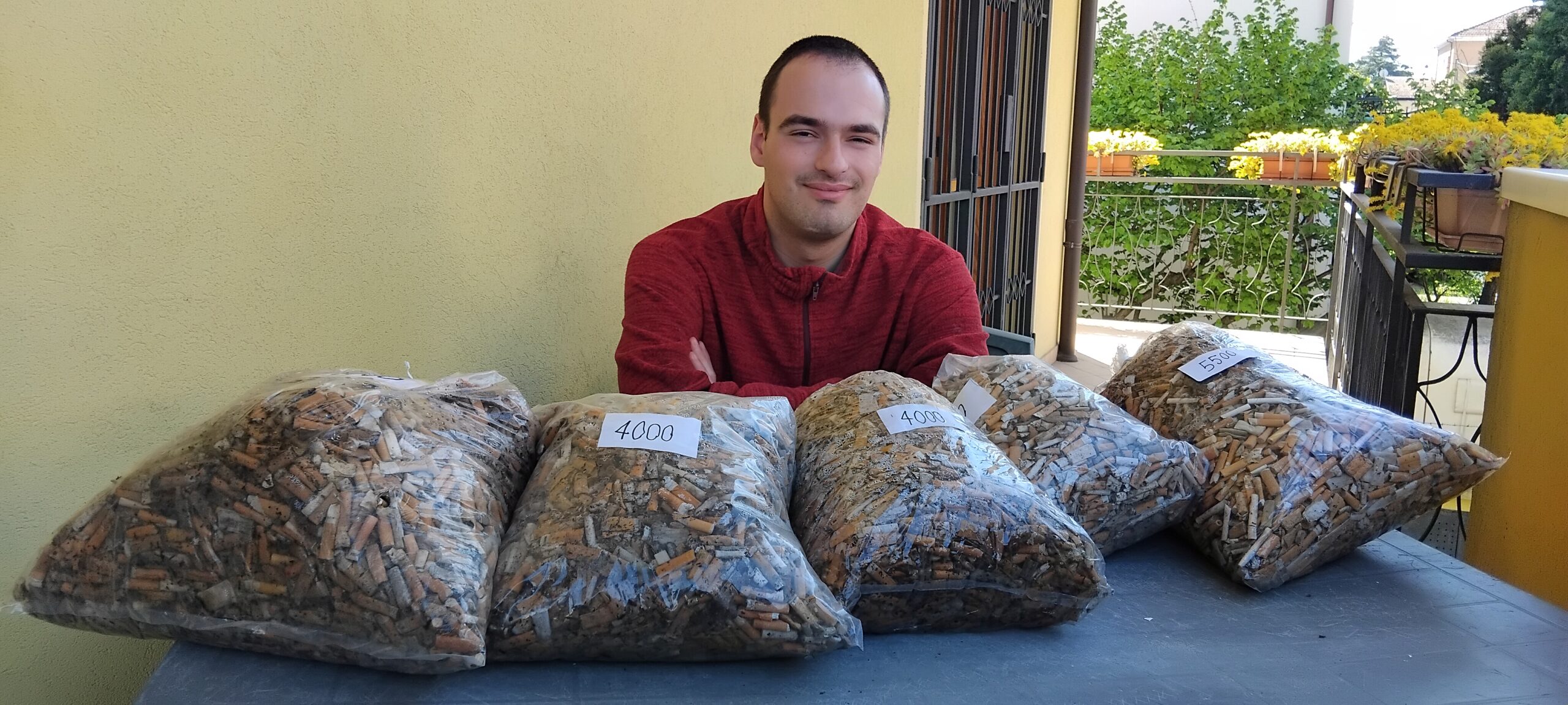 L’idea è arrivata passeggiando con il suo cane: “Ho iniziato ad agosto, pulendo l’area verde vicino a casa mia. Ormai ricordavo l’immondizia presente, non passavano mai a pulire”. Così, armato di guanti e sacchetti, ha iniziato a liberare i prati dai rifiuti. E ha deciso di avviare un esperimento durato poi due mesi: ogni giorno, dal 4 febbraio al 4 aprile, ha raccolto ogni singola sigaretta trovata per terra. Per un totale di cinque sacchi pieni. “Se io da solo, limitandomi alle zone e alle spiagge che frequento più spesso, ne ho raccolte così tante, penso sia facile dedurre quanto siano sporche le città”.