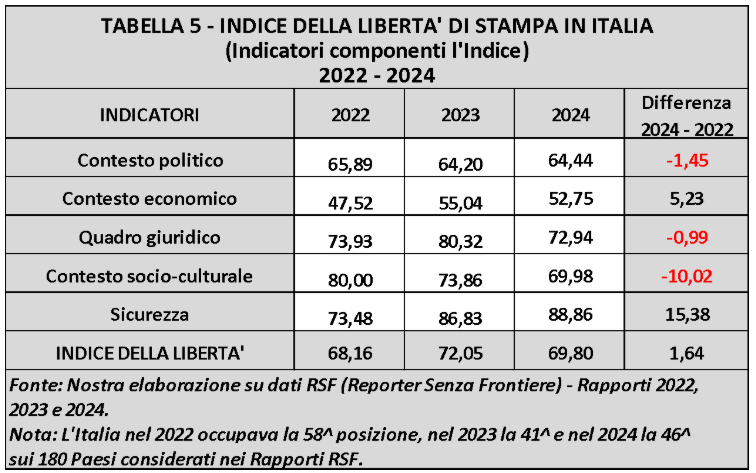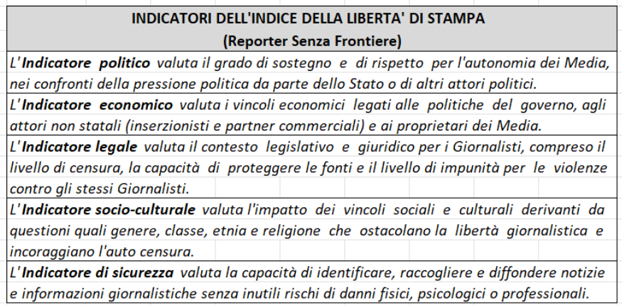 L’Indice di libertà di Stampa è il risultato della media aritmetica di 5 Indicatori.