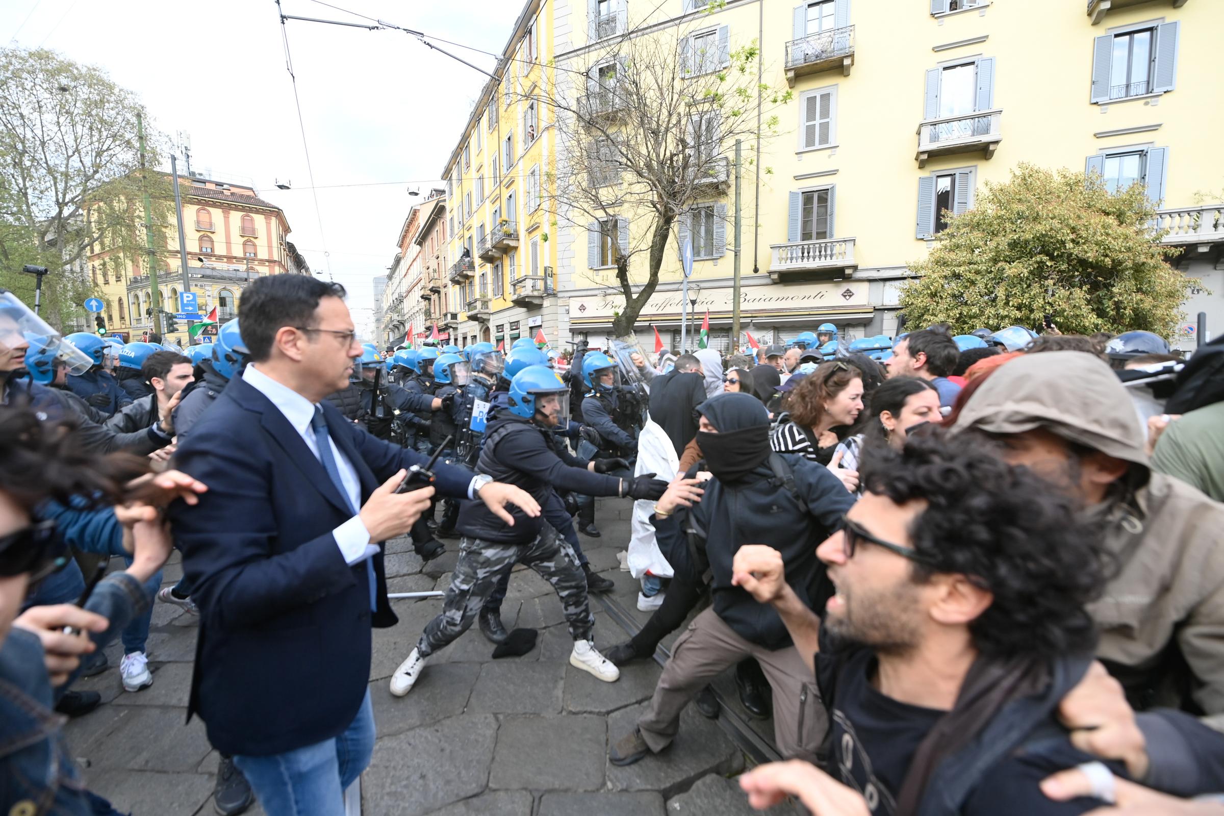 Resistenza a pubblico ufficiale, oltre a danneggiamento e possesso di un coltello a serramanico. Sono le accuse mosse ai 6 persone denunciate per gli scontri durante il corteo Pro Palestina di sabato a Milano. I manifestanti – cinque uomini e una donna – hanno tutti un’età compresa tra i 19 e i 30 anni. Il questore di Milano ha disposto nei confronti di tutti il Daspo urbano e per tre anche il foglio di via da Milano. Uno dei sei, già protagonista dei disordini durante un corteo per l’anarchico Alfredo Cospito, ha ricevuto un avviso orale. Tutti sono stati denunciati per la resistenza, solo uno invece per il danneggiamento e il possesso del coltello. La procura milanese è in attesa della informativa della Digos per poi aprire formalmente un’indagine.