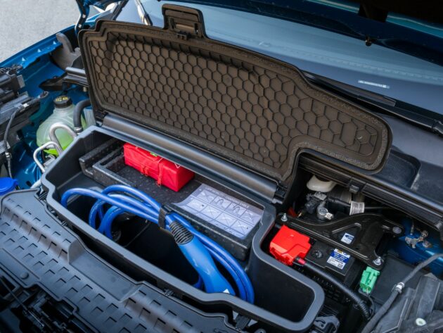 Evidentemente questo compromesso si è reso necessario per adattare all’elettrico un pianale nato per il termico, senza modificare in maniera consistente (e costosa) il disegno del resto della vettura e senza penalizzare troppo lo spazio a bordo. La volumetria interna, in effetti, è piuttosto buona e il pavimento non risulta troppo rialzato rispetto all’altezza della base dei sedili. Il posto guida, poi, è ottimo con il sedile che ha regolazioni ampie e permette a persone di corporature diverse di trovare la giusta posizione. Per quanto riguarda i bagagli, infine, il vano posteriore mantiene e amplia il doppio fondo apprezzato sulla versione termica e ha una capacità di 531 litri, a cui si aggiungono i 43 litri di quello anteriore. Il piccolo “frunk” è stato ricavato nel cofano, sopra il motore, e la sua forma è utile a riporre il cavo di ricarica. A questo proposito, gli accumulatori della Puma Gen-E sono agli ioni di litio e hanno una capacità netta di 43 kWh che configura un’autonomia nel ciclo misto WLTP di 376 km.