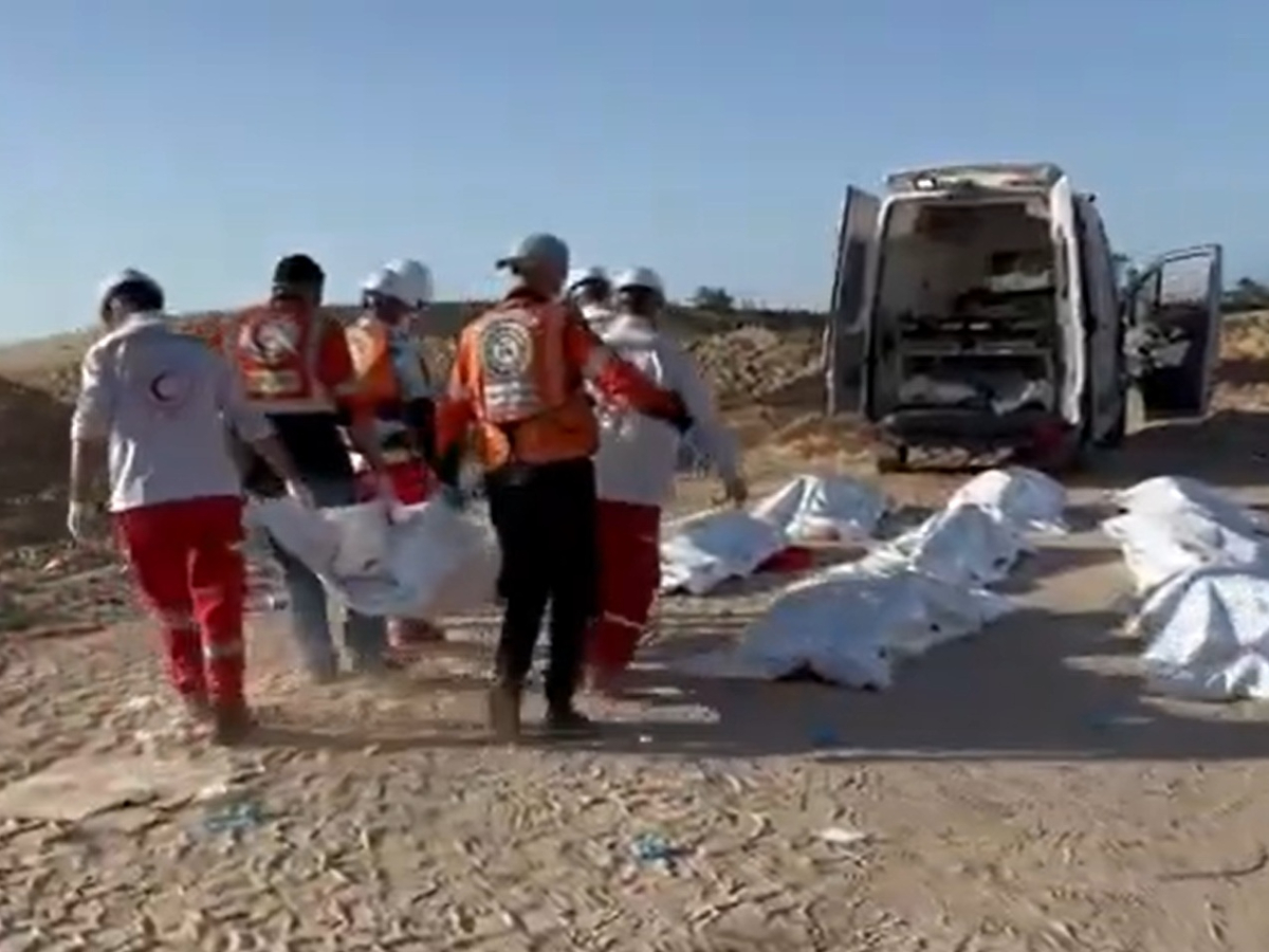 Israele ha ammesso che i suoi militari hanno compiuto l’attacco, dopo aver affermato che i mezzi di soccorso procedevano a spari spenyti e non si erano resi riconoscibili. Una ricostruzione smentita dai filmati di quella notte. Dopo la strage, i soldati israeliani hanno seppellito la maggior parte dei corpi in una fossa comune, hanno distrutto le ambulanze, l’autopompa e un veicolo delle Nazioni Unite, per poi seppellire anche questi.