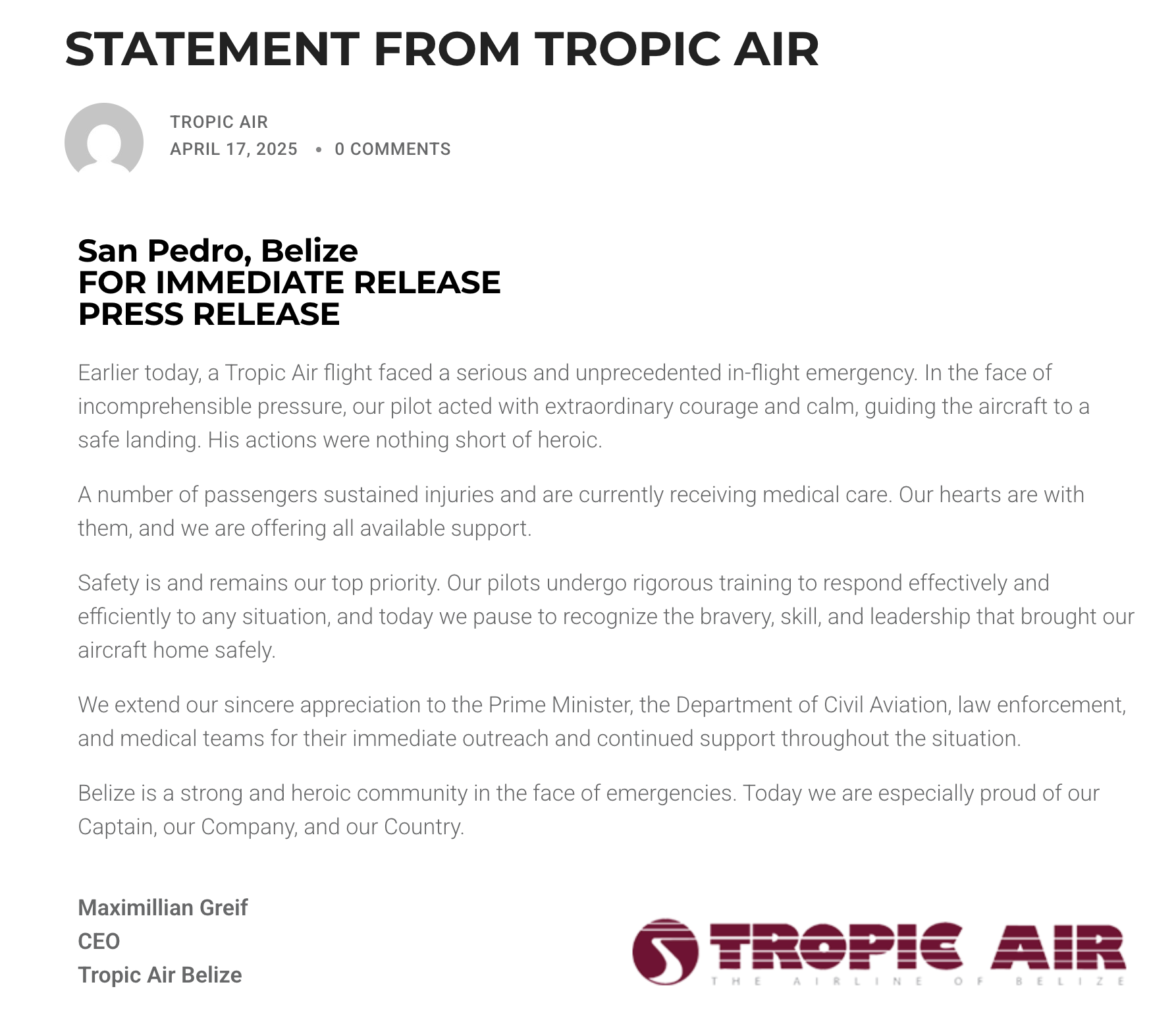 L’aggressione, che ha portato al ferimento di due passeggeri e del pilota – uno di loro peraltro in gravi condizioni – si è conclusa con l’intervento di un altro passeggero che ha estratto la pistola e sparato al petto del dirottatore, uccidendolo. L’ambasciata USA in Belize ha specificato di non aver mai avuto contatti con l’aggressore durante il dirottamento e di non sapere che si trovasse in Belize. A Taylor – che è stato dichiarato morto in ospedale – era stato vietato l’ingresso in Paese: non è dunque chiaro come sia riuscito a salire sull’aereo sebbene il capo della Polizia Chester Williams abbia specificato – riporta Today – che “le piste di atterraggio più piccole del Belize non dispongono di personale di sicurezza in grado di perquisire a fondo i passeggeri”.