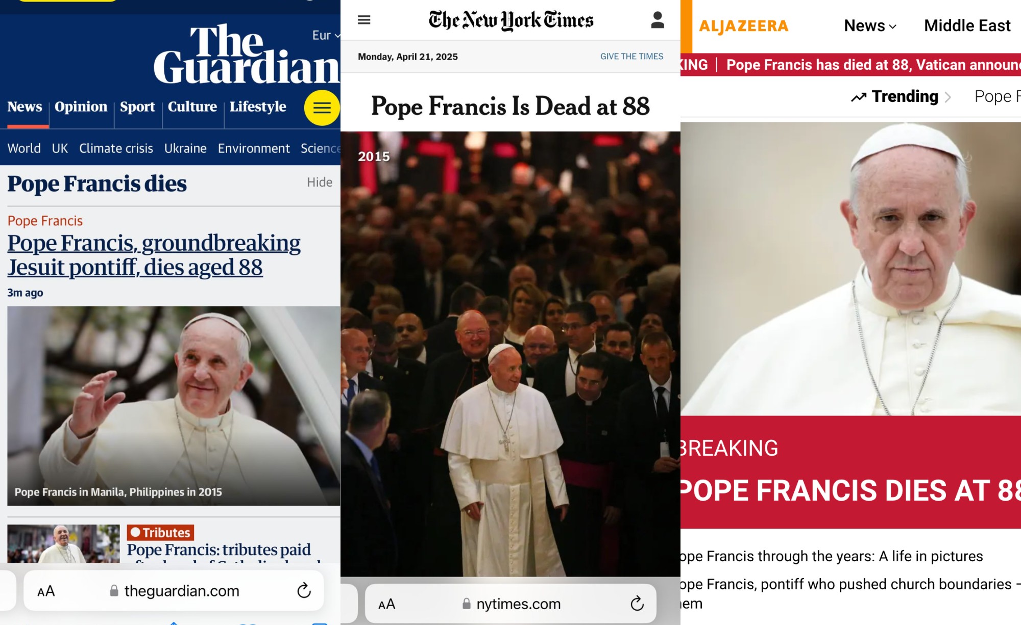 Negli Stati Uniti, il New York Times ne evidenzia il ruolo di difensore degli ultimi e il confronto con le ali più conservatrici della Chiesa: “Ha difeso gli emarginati e si è scontrato con i tradizionalisti, che lo accusavano di annacquare gli insegnamenti della Chiesa”. Il Wall Street Journal riconosce il suo tentativo di “riorientare la Chiesa cattolica verso la promozione della giustizia sociale ed economica piuttosto che verso i tradizionali insegnamenti morali”, ma sottolinea anche come abbia “presieduto a crescenti divisioni nella Chiesa e abbia lottato con il persistente scandalo degli abusi sessuali da parte del clero”. Il Washington Post ricorda come “l’apertura e l’empatia del pontefice per gli emarginati hanno rimodellato il papato”. E la CNN definisce il suo un “papato senza precedenti nei tempi moderni”, ricordando il suo “stile unico”, la rinuncia all'”opulenza” papale “in favore dei modesti orpelli della sua vita in Argentina, dove un tempo aveva lavorato come custode e buttafuori in un bar”.