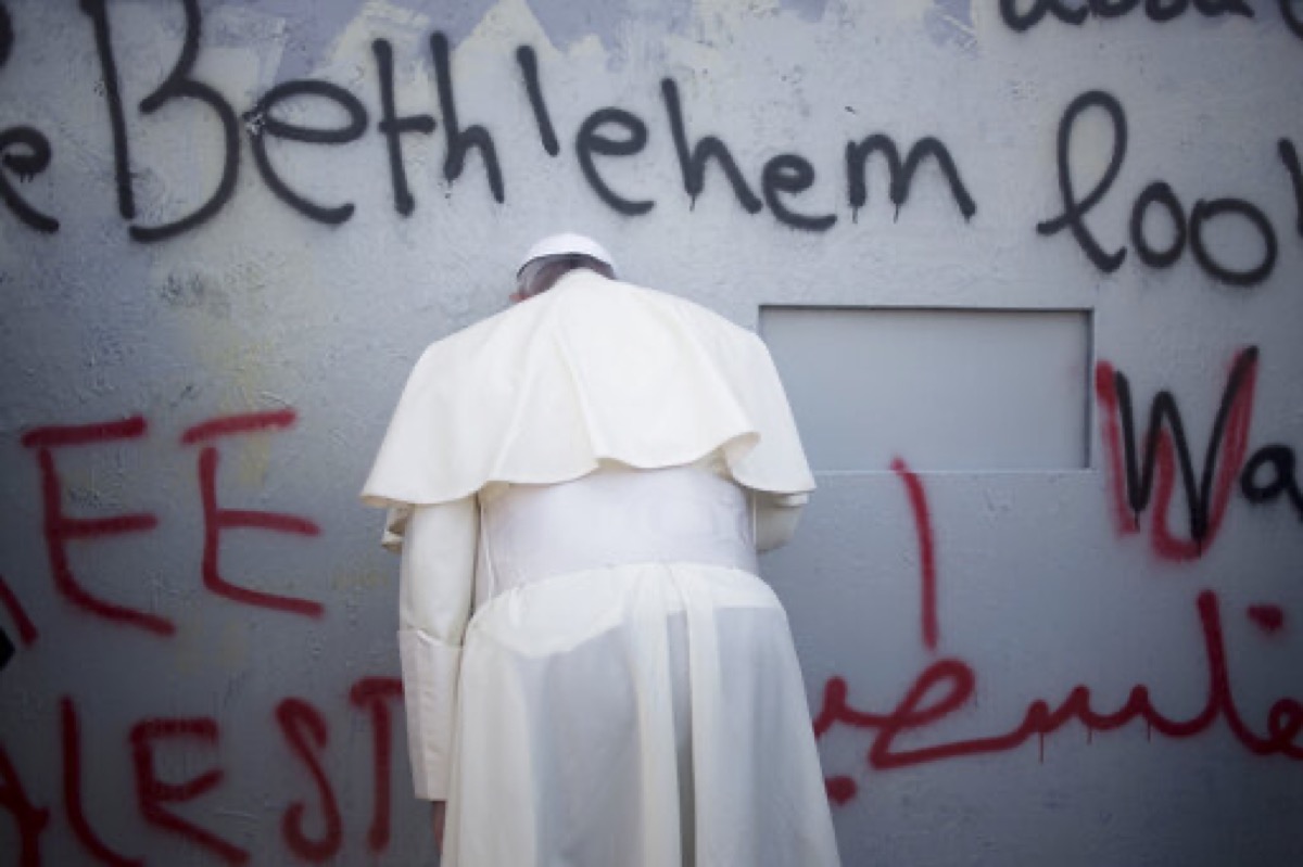 Il 25 maggio 2014 Francesco si ferma a pregare in piazza Manger, accanto alla Chiesa della Natività, a Betlemme di fronte al muro che divide Cisgiordania e Israele.