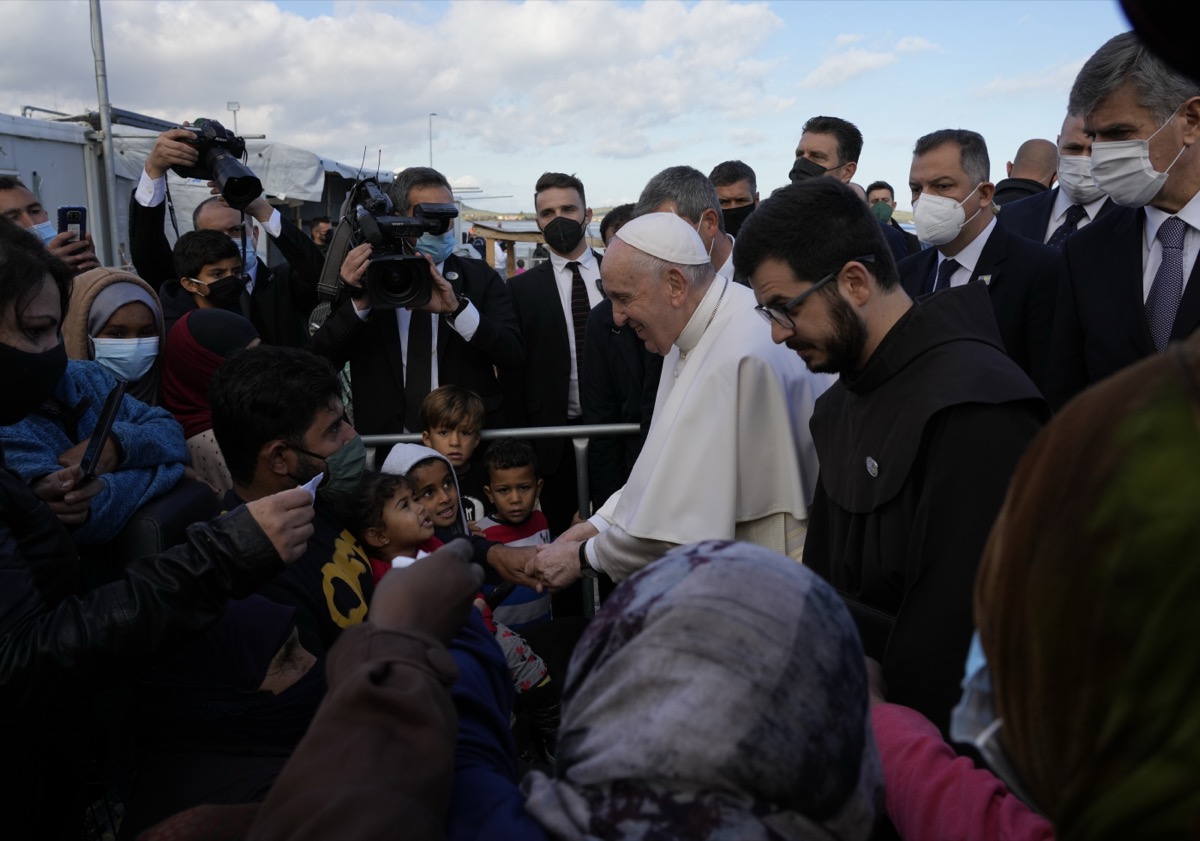 Nel 2016 il Papa vola sull’isola di Lesbo, in Grecia, per incontrare i migranti che vi trovano approdo durante la loro fuga dalle terre più povere e in cui persistono conflitti.