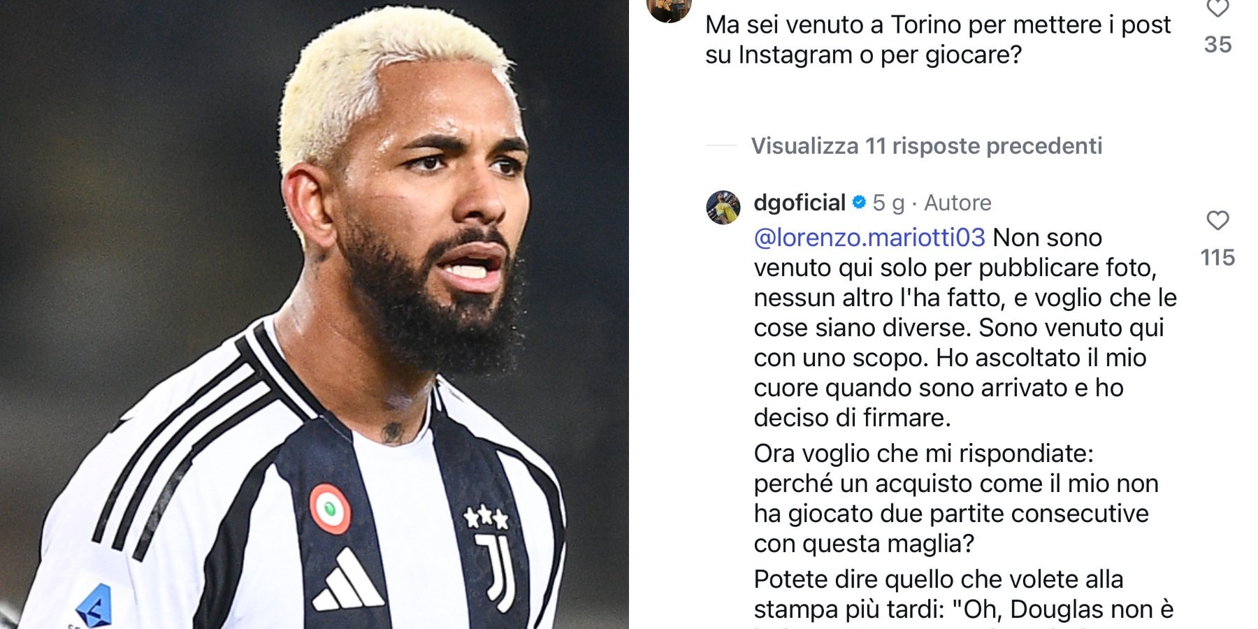 “Per quanto tempo sono rimasto in panchina mentre ero in salute?”. Questa è la domanda polemica che ha posto Douglas Luiz a un tifoso che ha commentato una foto del calciatore brasiliano della Juventus su Instagram chiedendogli se fosse venuto a Torino per giocare a calcio o solo per postare contenuti sui social network. “Non sono venuto qui solo per pubblicare foto, nessun altro l’ha fatto, e voglio che le cose siano diverse. Sono venuto qui con uno scopo. Ho ascoltato il mio cuore quando sono arrivato e ho deciso di firmare il contratto. – ha premesso Douglas Luiz – Ora però voglio che mi rispondiate: perché un acquisto come il mio non ha giocato due partite consecutive con questa maglia?”.