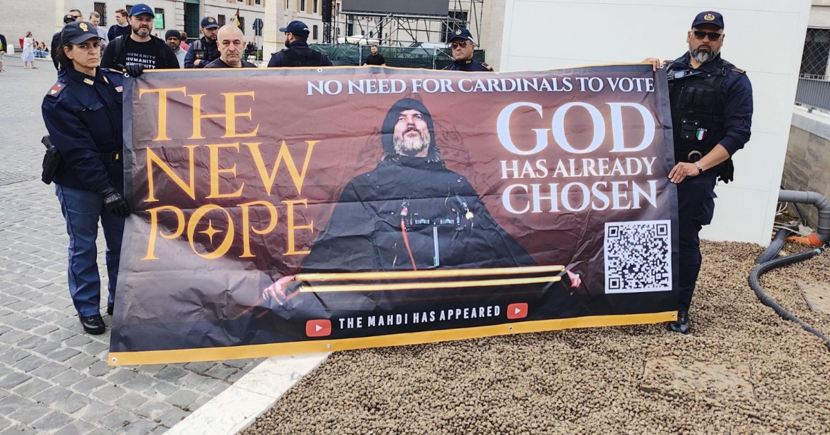 Uno striscione, in lingua inglese, che inneggiava alla figura islamica del Mahdi, è stato sequestrato questa mattina dagli agenti dell’Unità Spe della Polizia Locale di Roma Capitale, (Sicurezza pubblica emergenziale), in prossimità del palco dell’area stampa sito vicino alla Basilica di San Pietro, dove si sta svolgendo il Conclave. Il Mahdi è una figura centrale nell’escatologia islamica, un personaggio messianico atteso che, secondo diverse interpretazioni, restaurerà la religione e la giustizia prima della fine del mondo.