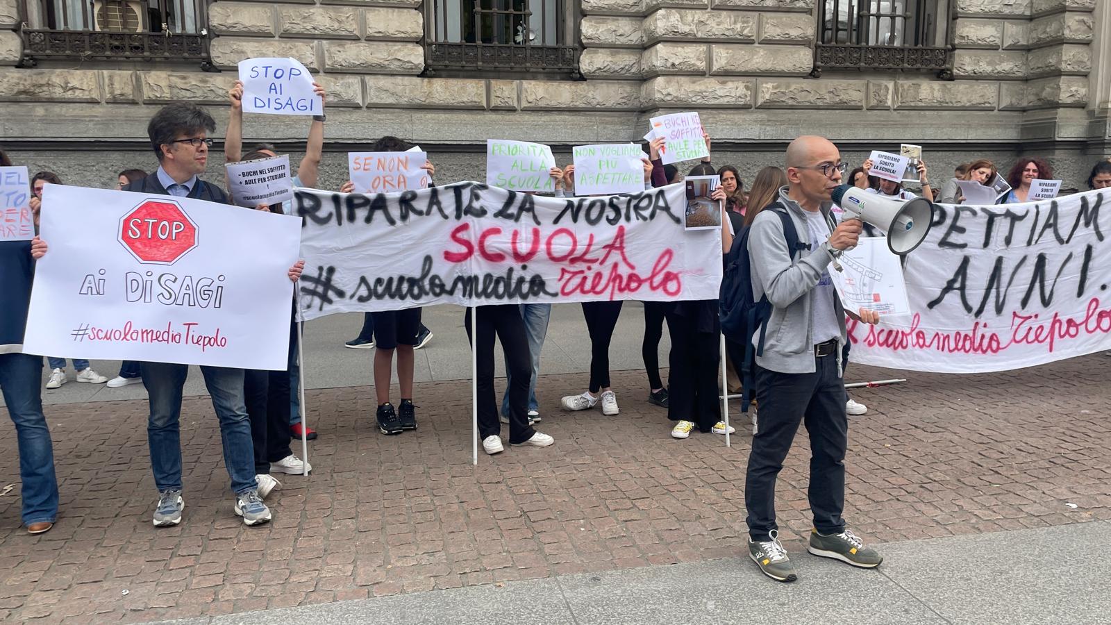 “Adesso basta. Il Comune deve intervenire a ristrutturare la nostra scuola”. A scendere in piazza, sotto Palazzo Marino, nel tardo pomeriggio di lunedì sono stati circa 200 tra genitori, professori e studenti della secondaria di primo grado Tiepolo in piazza Ascoli a Milano. Sei classi su trenta sono inagibili da mesi ma nessuno ad oggi si è preso la briga di intervenire su questo edificio dove convivono la Tiepolo e il liceo Virgilio, il primo di competenza comunale mentre il secondo in capo a Città Metropolitana.