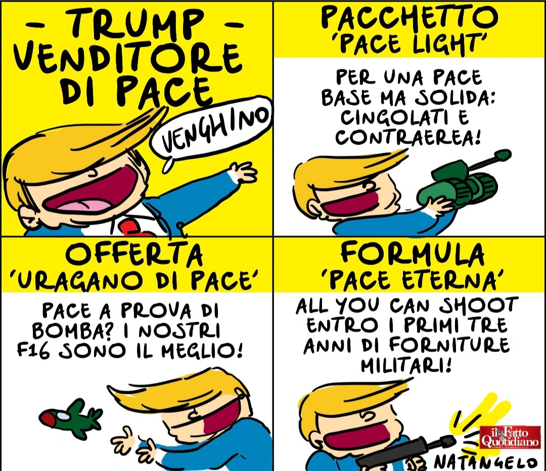 Il venditore di pace – la mia vignetta per Il Fatto Quotidiano oggi in edicola