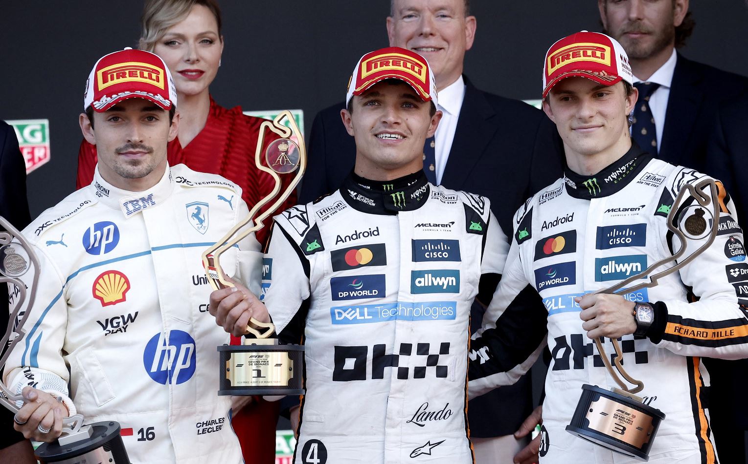 Davanti, Verstappen ha allungato lo stint di gara con le gomme medie già usate di 30 giri, rimanendo davanti a Norris e Leclerc, che nelle ultime venti tornate, dopo aver superato i doppiati, si sono ritrovati incollati al posteriore della Red Bull dell’olandese. Ha pregato follemente in una bandiera rossa, il campione del mondo in carica, ma le cose non sono cambiate, mentre il pilota della Ferrari è rimasto attaccato a Norris, nervosissimo nei giri finali per la pressione del monegasco ma veloce quanto serviva, in trazione alla Rascasse e alla Noghes, per conservare nei tentativi di attaccarlo nei punti più lunghi della pista: all’uscita del Tunnel e sul rettilineo. All’ultimo giro Verstappen è poi rientrato per mettere gomma rossa nuova, rientrando 4°, e lasciando così nelle mani di Norris la seconda vittoria di stagione. È così tornato a suonare la carica dopo un trittico di gare tra Bahrein e Miami pieno di errori, fra qualifiche e gara, nel quale Piastri era scappato via in classifica piloti. Il duello tra i due si infiamma sempre di più.