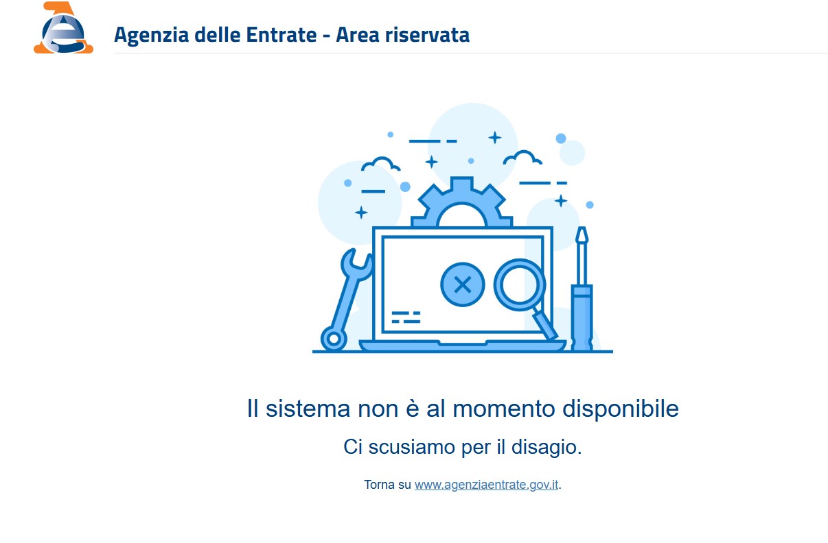 Nuovo blocco del sito dell’Agenzie delle Entrate, l’ennesimo negli ultimi giorni. La schermata che è apparsa agli utenti all’interno dell’area riservata del sito, gestito da Sogei, era: “Il sistema non è al momento disponibile. Ci scusiamo per il disagio”. Una stallo definito “intollerabile” dall’Anc, Associazione nazionale commercialisti: il sito “da questa mattina presenta gravi malfunzionamenti che non permettono l’utilizzo dei servizi telematici fondamentali per l’invio delle dichiarazioni fiscali“, denuncia l’associazione mentre sui social si moltiplicano le proteste di professionisti e contribuenti, che mostrano foto del portale in tilt.