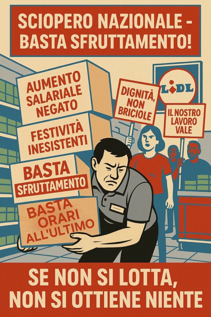 24 maggio: scioperano i lavoratori e le lavoratrici della Lidl in tutta Italia. 80 punti vendita restano chiusi; più dell’80% dei dipendenti (23mila) partecipano alla protesta, con punte del 100%. Aderiscono anche i lavoratori precari, segno di grande coraggio, ma anche di una situazione divenuta davvero insostenibile.