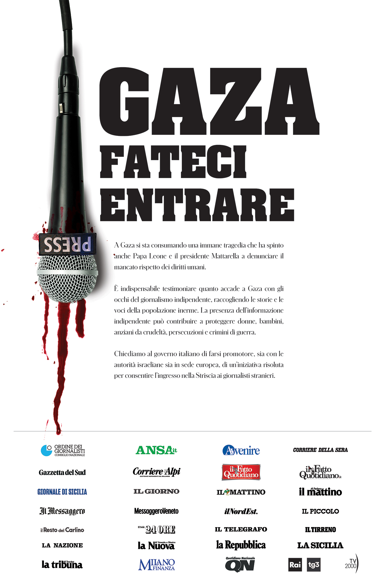 Chiediamo al governo italiano di farsi promotore, sia con le autorità israeliane sia in sede europea, di un’iniziativa risoluta per consentire l’ingresso nella Striscia ai giornalisti stranieri“.