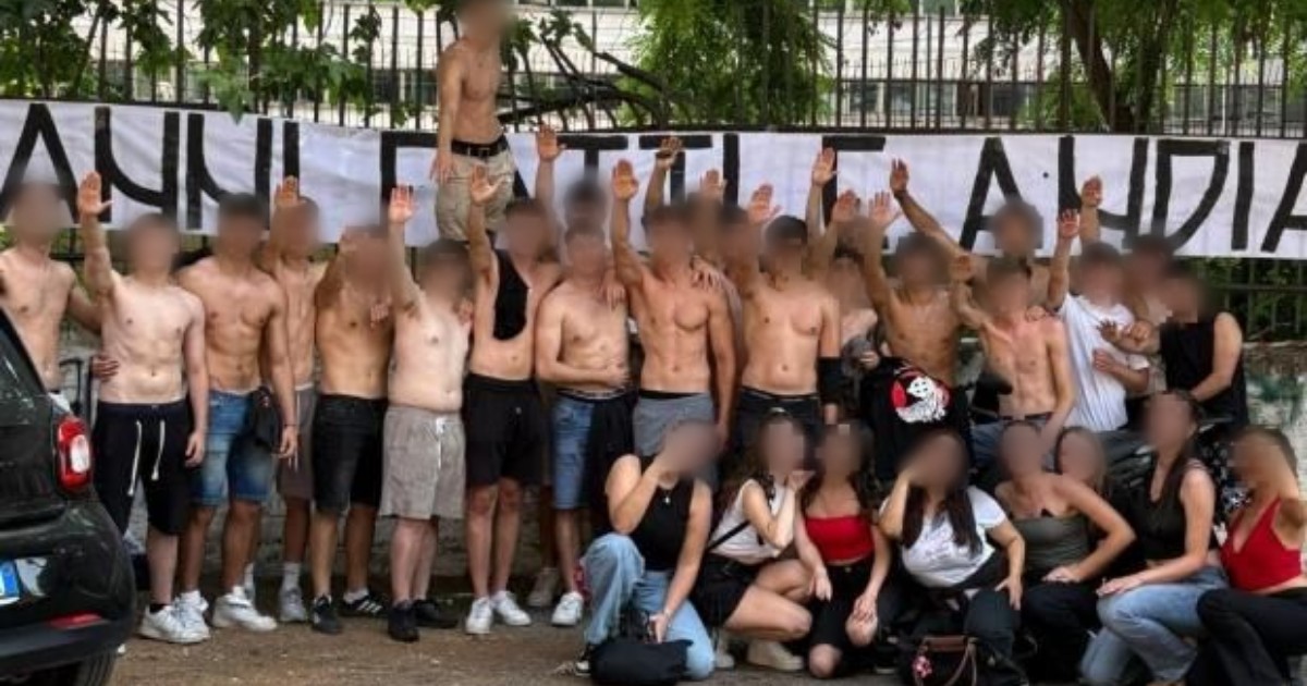 Petto nudo, striscioni appesi e saluto fascista. È quanto si vede nella foto di gruppo scattata lo scorso 6 giugno da una trentina di maturandi nel cortile del liceo Malpighi di Roma. Il gesto, a cui le poche ragazze presenti non hanno preso parte, ha suscitato profonda delusione e “ferma indignazione” in tutto il corpo docente.