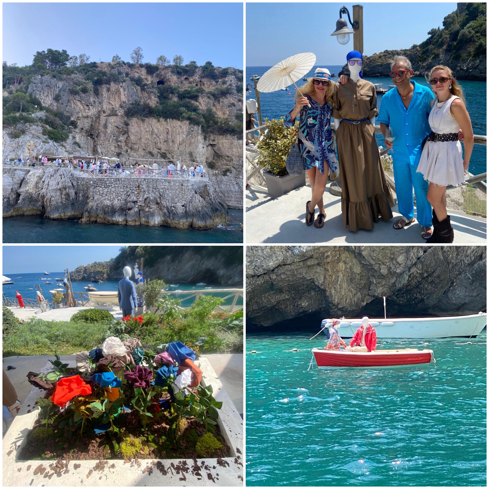 Ogni due anni per creare l’aspettativa. Gianluca Isaia eredita l’azienda sartoriale del padre, triplica il fatturato, 500 dipendenti ma sopratutto non vende. Due anni fa si inventò una sorte di Biennale pied sans l’eau al Beach Club più griffato di Capri, sicuramente il primo, firmato Dior al Riccio. Gli invitati a darsi di gomito, vedrai che annuncia la vendita del marchio fatto di sapienza artigianale che fa gola ai pescecani del FF ( come ti Frego il Fashion, ti compro le azioni, aumento di capitale e ti sbatto fuori). Invece Gianluca rimane ben saldo al timone dell’azienda di famiglia. Quest’anno alla Conca del Sogno di Recommone, non occorre aggiungere altro per descrivere l’incanto del posto in un anfratto della costiera amalfitana, allo stesso parterre internazionale apriva la sua Open-Air Gallery, manichini sospesi nel vuoto come un tuffo a mare, altri su vecchie barchette di pescatori all’insegna del leit motif “ A mmare cu tutti ‘e panne” ( espressione follkloristica dialettale siamo finiti a mare con i vestiti). Altri modelli presentati su tableaux in stile pop art. L’evento “Dive In. Dance Out” a suon delle note dei Gipsy King ( la band originale non un clone) in mezzo ad auiole fatte di fiori colorati di tessuto Isaia sotto una cascata di vodka e limoni versata su una piramide di bicchieri di cristallo. Era solo l’inizio. Mentre Antea dal nome mitologico gestiva il traffico del placement a tavola. E lì che si é scatenato l’impero dei sensi. Rivisitazione degli spaghetti alla Nerano e ravioli ripieni di gamberi di Mazzaro del Valle con guazzetto di sauté di vongole. Balli fino al tramonto con il bicchiere brillo.