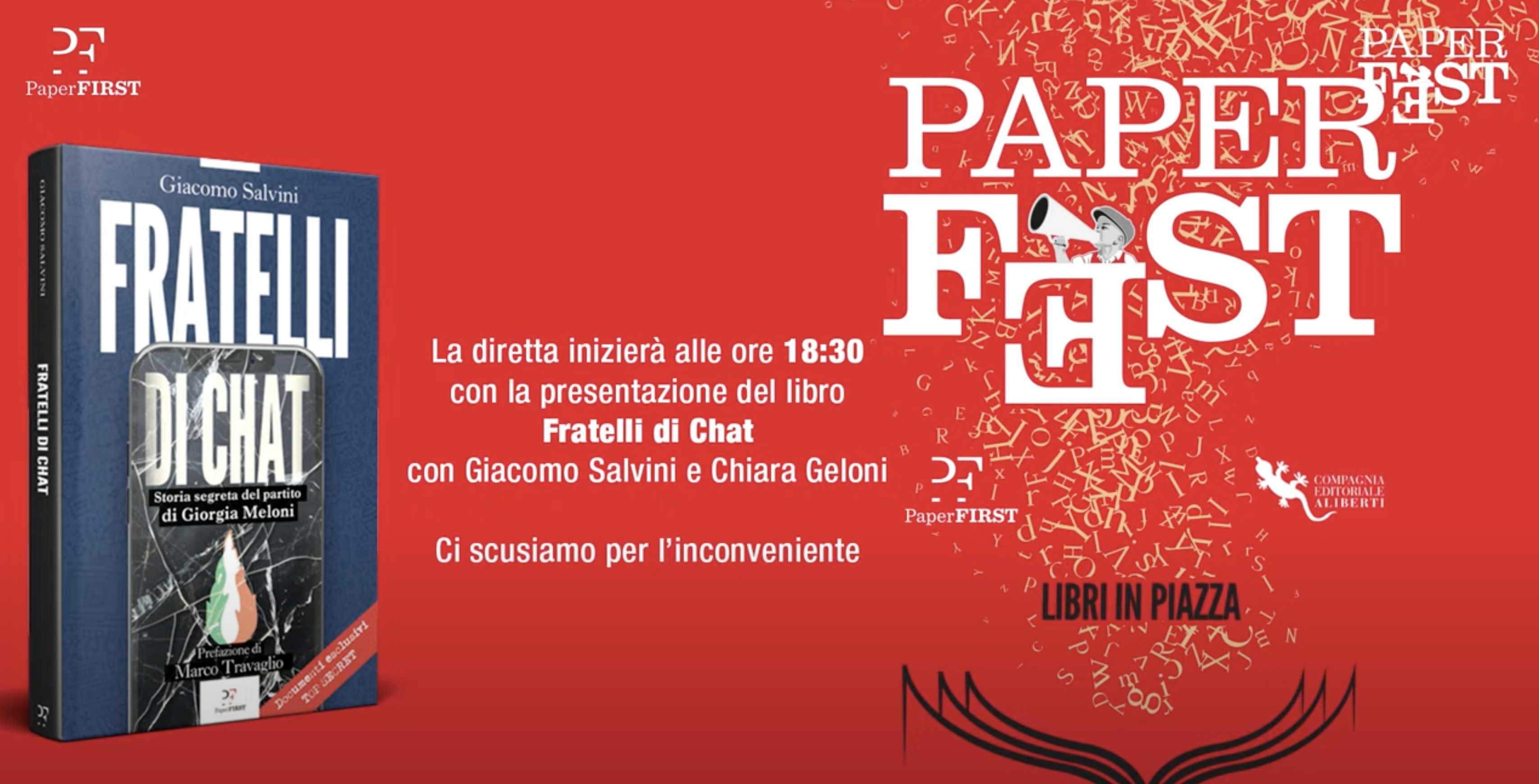 Paper Fest, libri in piazza. Alle 18.30 la diretta con la presentazione di ‘Fratelli di Chat’ di Giacomo Salvini