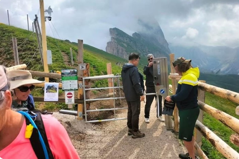 L’overtourism non colpisce soltanto le grandi città d’arte come Venezia, ma anche le aree montane delle Dolomiti. Un contadino della Val Gardena, in protesta contro il sovraffollamento turistico ed esasperato per i danni causati dagli innumerevoli visitatori che calpestano il prato e lasciano in giro i rifiuti, ha installato un tornello a pagamento all’ingresso del sentiero sul Seceda che porta a un punto panoramico dal quale si possono fotografare le famose vette dolomitiche Odle. L’iniziativa è stata bloccata dalla Provincia perché il sentiero si trova all’interno del Parco naturale Puez Odle.