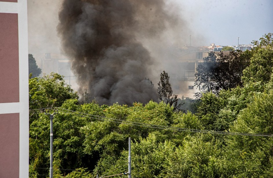Nessuna persona coinvolta, ma si teme che il fumo possa creare disagi alla circolazione aerea del vicino aeroporto di Linate