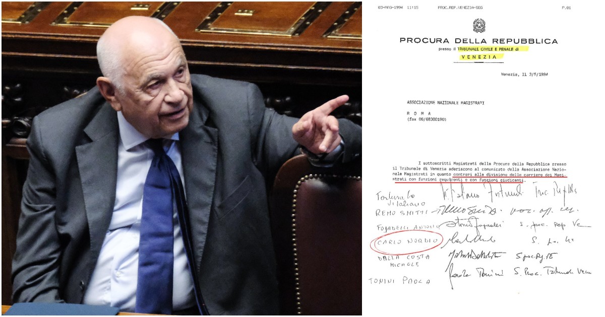 Oggi si dice “molto soddisfatto” per avere realizzato una sua “aspirazione”. Ma il ministro Carlo Nordio non è sempre stato favorevole alla separazione delle carriere dei magistrati. Non lo era di certo il 3 maggio 1994, quando da magistrato alla procura di Venezia ha firmato, insieme ad altri colleghi, un appello contro la separazione. Il documento esclusivo è stato pubblicato dall’Associazione nazionale dei magistrati. E subito dopo arriva la replica del ministro della Giustizia: “Cambiai idea dopo il suicidio di un indagato”.