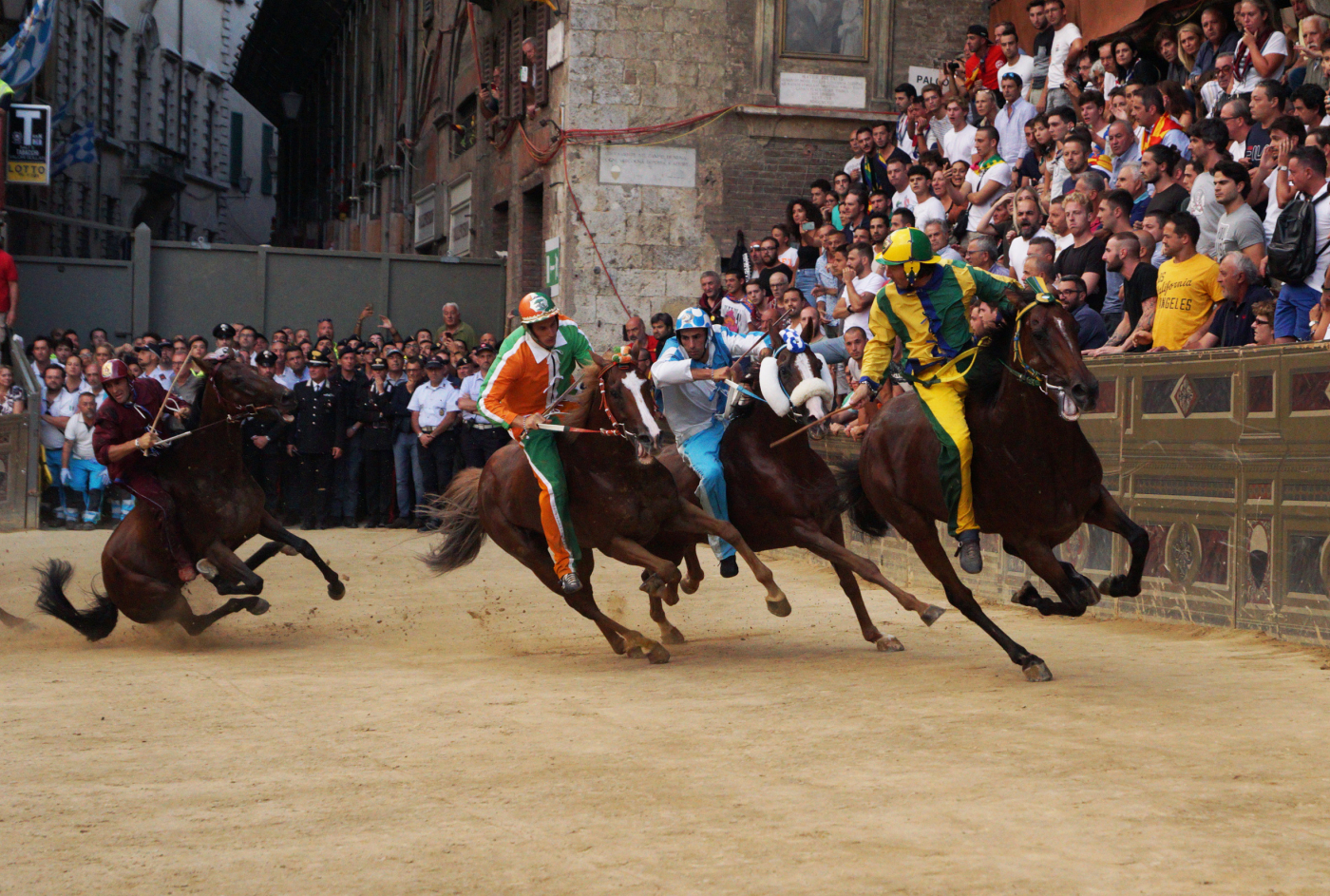 Il tufo e la sabbia sono stati stesi lungo il perimetro di piazza del Campo. E le curve di San Martino e del Casato, con angoli rispettivamente di 95 e 92 gradi, aspettano gli immancabili incidenti della corsa. A trattenere il fiato non saranno solo gli spettatori che assisteranno dal vivo al Palio di Siena, in programma sabato 16 agosto, ma anche quelli che lo guarderanno da casa, grazie alla copertura dell’emittente La7. Il paradosso è che, nel corso dell’anno, la politica si è premurata di approvare una legge contro il maltrattamento sugli animali. Una norma che da più parti è stata definita un’occasione persa e che è stata buona per sventolare la bandierina col proprio elettorato, alla ricerca di consensi. E il Palio di Siena, la corsa di cavalli più famosa d’Italia, è l’emblema di questa occasione persa.