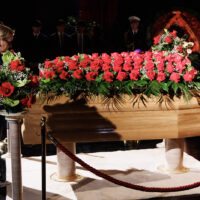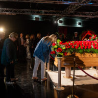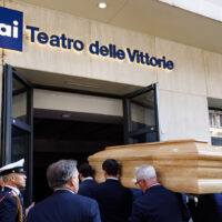 La giornata è un pellegrinaggio di amici e colleghi. È arrivata l’ex moglie Katia Ricciarelli, accolta da Tiziana. Molto provata Mara Venier, così come Carlo Conti,Lorella Cuccarini, Eros Ramazzotti, Max Giusti e tanti altri. Ramazzotti, dopo essersi chinato per accarezzare la bara, ha detto poche, sentite parole: “Un ricordo di Pippo? Il migliore, il migliore. È dura”. Il Direttore Generale Rai, Roberto Sergio, ha offerto un ritratto potente del legame tra Baudo e l’azienda: “Lui non muore, lui è la Rai. Continua a essere moderno, anche i giovani lo seguono. Tutti si ispireranno a Pippo, compreso Stefano De Martino”. Anche il Ministro della Cultura, Alessandro Giuli, ha reso omaggio, definendo Baudo “un pezzo dell’anima della storia della televisione italiana, un pezzo dell’autobiografia della nazione. È stata la manifestazione più credibile, più forte e più amata della cultura nazionalpopolare in cui tutti si sono riconosciuti”.