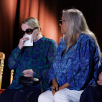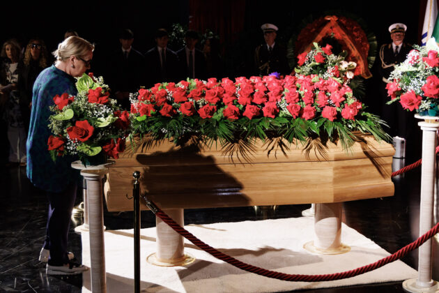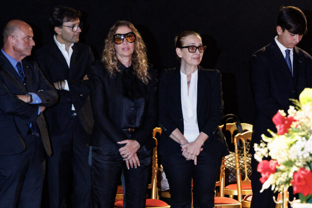 Tiziana Baudo and Katia Ricciarelli pay tribute to Pippo Baudo in the chapel of rest set up at the Teatro delle Vittorie, Monday, August 18, 2025 (Photo by Roberto Monaldo / LaPresse)