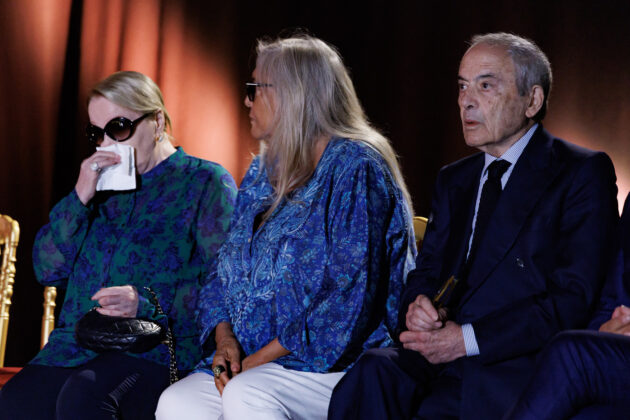 Katia Ricciarelli, Mara Venier and Giorgio Assumma pay tribute to Pippo Baudo in the chapel of rest set up at the Teatro delle Vittorie, Monday, August 18, 2025 (Photo by Roberto Monaldo / LaPresse)