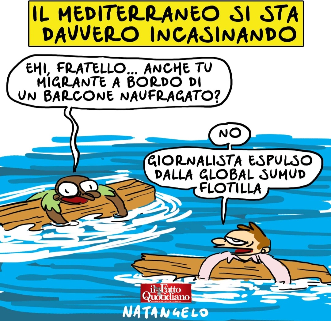 #flotilla #globalsumudflotilla #israele #gaza #palestina #vignetta #fumetto #umorismo #satira #ilfattoquotidiano #natangelo
