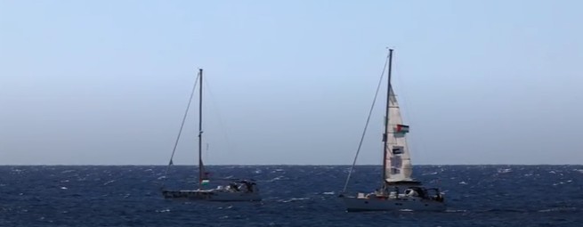 Si naviga in flotta, abbastanza distanziati, tutti in contatto via radio. È stato tutto definito dai comandanti nelle riunioni dei giorni scorsi. Davanti a tutti dovrebbero esserci la Familia Madeira e Alma, barche a motore partite il 31 agosto da Barcellona e poi colpite in Tunisia da due ordigni incendiari sganciati da droni, però Alma ha avuto un problema e stanno rientrando in porto: quando ripartiranno ci raggiungeranno, nel frattempo Aurora, una barca a vela, guida la Flotilla.