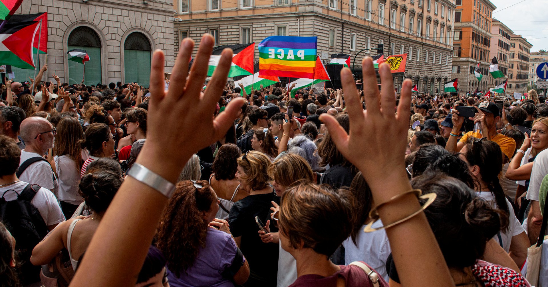 È dall’ottobre 2023 che osserviamo una crescita della mobilitazione. Nelle grandi città e in provincia, persino nei centri turistici. Nelle università, negli ospedali, nel mondo del lavoro, nei porti. Fin dall’inizio, per esempio, i sindacati di base sono riusciti a portare in piazza i lavoratori di origine araba, che trovavano un nesso tra lo sfruttamento lavorativo e il rifiuto della loro identità. Nella primavera dell’anno scorso la protesta degli studenti accampati nelle università si è intrecciata a quella dei docenti sui rapporti con istituzioni israeliane, finendo per coinvolgere persino il personale tecnico e amministrativo. C’è stato via via un allargamento oltre i gruppi che storicamente si mobilitavano per la Palestina.