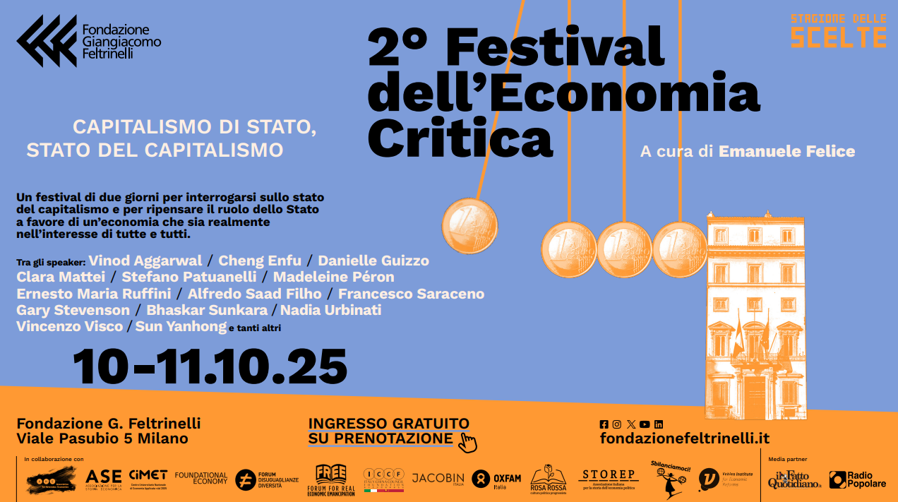Torna a Milano il Festival dell’Economia Critica, due giorni di dibattito e confronto per interrogarsi sullo stato attuale del capitalismo e immaginare un ruolo diverso per lo Stato nell’economia contemporanea. L’edizione 2025, la seconda, curata ancora da Emanuele Felice, porterà alla Fondazione Feltrinelli 20 incontri e 70 ospiti internazionali tra economisti, studiosi, giornalisti, attivisti e giuristi.