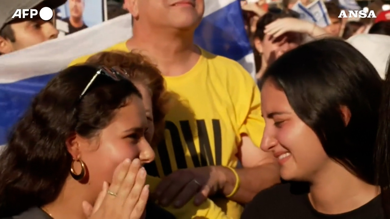 Scene di forte emozione oggi in Piazza degli Ostaggi a Tel Aviv dove centinaia di persone hanno accolto la notizia della liberazione degli ostaggi