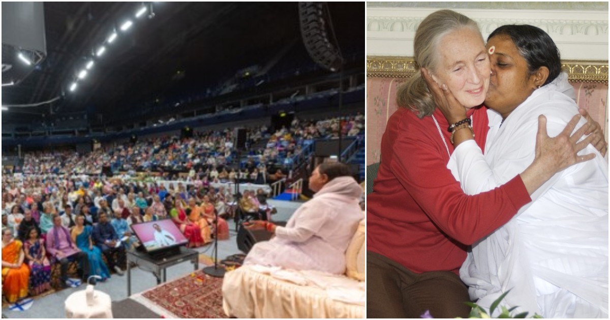 Nella foto in alto | Un incontro di Amma e la leader religiosa con la etologa Jane Goodall, scomparsa di recente