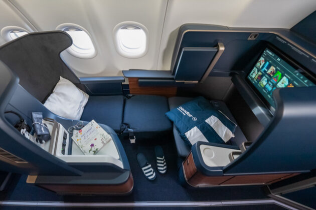 Nella tariffa del biglietto sono poi inclusi la scelta del posto, due bagagli da stiva e due da cabina. Ci sono anche compagnie aeree che quando si tratta di business class sanno il fatto loro, come Condor, storico vettore con base a Francoforte, specializzata nel lungo raggio, che al momento vola da Milano e da Roma e dall’estate prossima anche da Venezia. Tra le destinazioni nuove la Thailandia, quindi Bangkok e Phuket che vanno tantissimo per il mercato italiano, per l’Africa Johannesburg, Cape Town e poi Zanzibar e Mombasa. E poi Mauritius, Caraibi, Canada e persino Alaska una destinazione Condor di nicchia. Ma la vera chicca è che nella prima fila della business class ci sono quattro posti, i ‘Prime Seat’, situati nella prima fila dell’aereo. Offrono maggiore spazio, un letto più ampio, un sedile frontale aggiuntivo per un compagno di viaggio, uno schermo 4K da 24 pollici e un servizio completo di snack e bevande. I passeggeri beneficiano anche di un pacchetto Wi-Fi incluso e un kit di cortesia esclusivo.