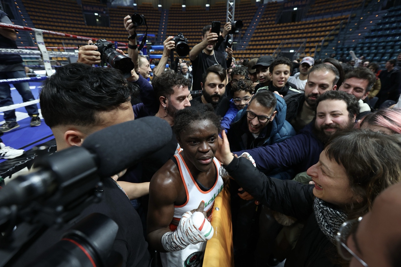 Al PalaDozza la 33enne che si allena nella palestra popolare della Bolognina ha conquista la cintura IBO battendo Carabajal. E' arrivata da bambina in Italia dal Camerun, oggi lavora all'ospedale Maggiore e lotta per altri trionfi sul ring