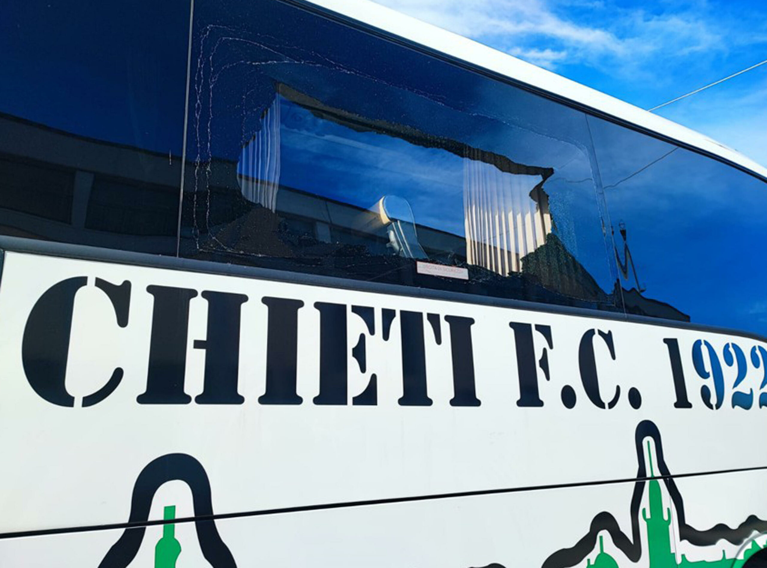 Solo una repentina manovra del conducente del pullman ha evitato che le persone in strada venissero investite. Mentre una delle pietre lanciate ha infranto il vetro oscurato laterale destro dell’uscita di sicurezza: per fortuna in questo caso il vetro interno ha retto, scongiurando una nuova tragedia. Sulla carrozzeria è presente una piccola ammaccatura. Le indagini si concentrano sulla tifoseria ultras teatina che ha contestato squadra e società alla luce delle vicissitudini dell’ultima settimana e delle sconfitte sul terreno di gioco che relegano il Chieti, partito con altre ambizioni, nella parte bassa della classifica del girone F di Serie D.