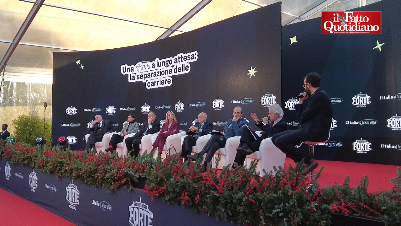 Era un dibattito molto atteso quello sulla separazione delle carriere dei magistrati che è andato in scena oggi ad Atreju, la festa di Fratelli d’Italia, in corso a Roma. Il Ministro della Giustizia Carlo Nordio si è confrontato con Silvia Albano, presidente di Magistratura Democratica. Sul palco per il sì al referendum anche Alberto Balboni, senatore Fdi e presidente della Commissione Affari Costituzionali di Palazzo Madama, Antonio Di Pietro e Sabino Cassese. “Il referendum non è su come funzione la giustizia né su come funziona la magistratura, ma sull’impedire ai giudici di ostacolare la politica” ha detto Albano al Fattoquotidiano.it. E il sottosegretario alla Giustizia, Andrea Delmastro Delle Vedove ha voluto fare il suo pronostico sul referendum. “Vittoria netta del sì”.