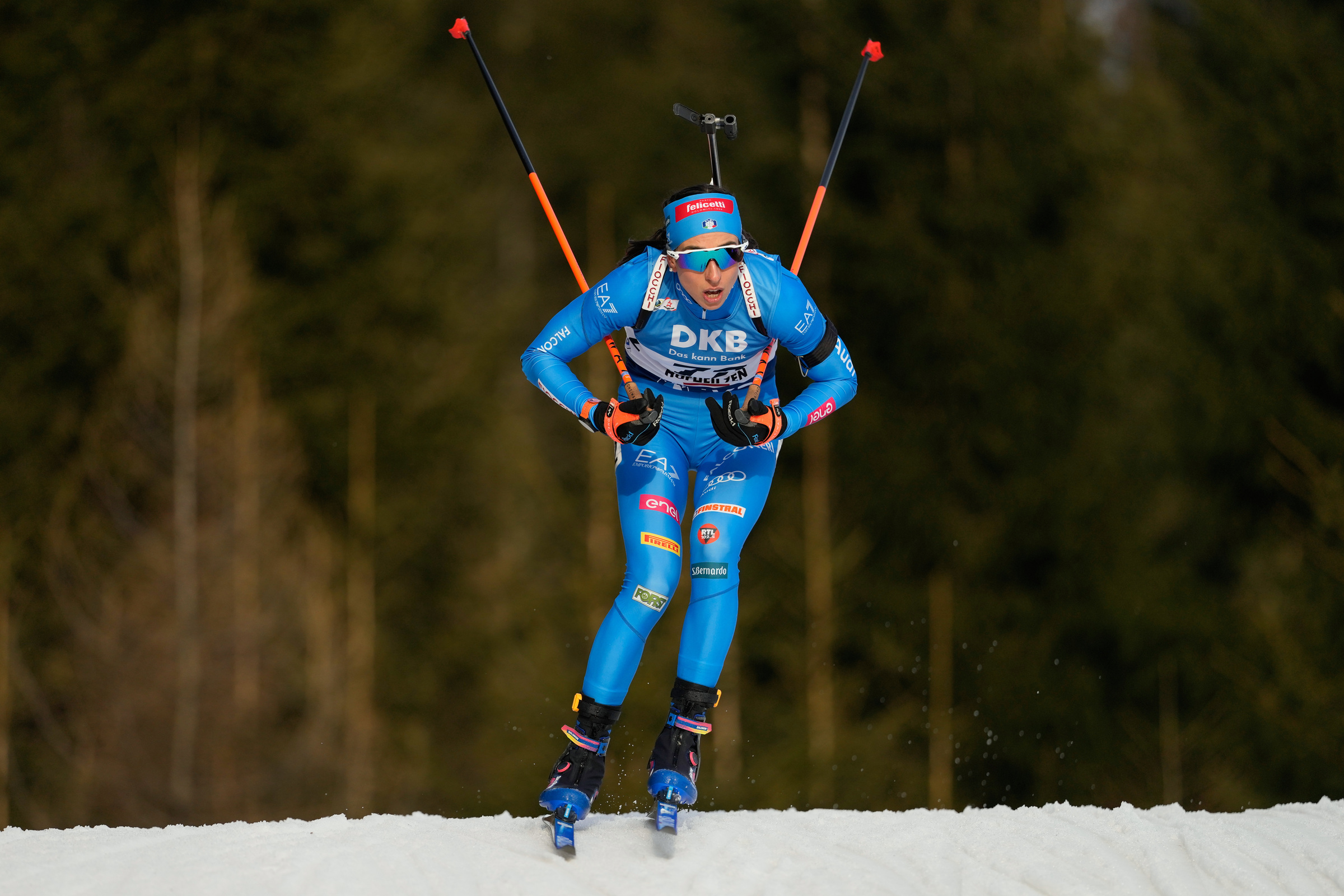 Vittozzi parte col pettorale 14, staccata di un minuto esatto dalla leader provvisoria, Lou Jeanmonnot (nell’inseguimento ci si porta “in dote” il distacco dalla vincitrice della sprint). L’atleta azzurra appare subito in forma nella parte sciata, ma è al poligono che fa la differenza, con una velocità al tiro irreale (chiude una serie a terra sotto i 19 secondi) e, ovviamente, con la precisione: zero errori in quattro poligoni. Vittozzi esce dall’ultimo poligono, quello in piedi, con un vantaggio di 3.6 secondi dalla numero uno della generale, la svedese Anna Magnusson. Ma non c’è storia: l’italiana la stacca e torna a vincere, commossa sulla linea del traguardo, dopo l’ultimo trionfo di Canmore, il 16 marzo del 2024, che la incoronò in quella stagione come la migliore biatleta del mondo. Chiude il podio la giovane norvegese Maren Kirkeeide. L’altra azzurra con possibilità di podio, Dorothea Wierer, chiude con un ottimo nono tempo con due errori al poligono. Bene Rebecca Passler, che entra in zona punti e recupera parecchie posizioni, 27esima (con un bersaglio mancato); e Samuela Comola 40esima (due errori).