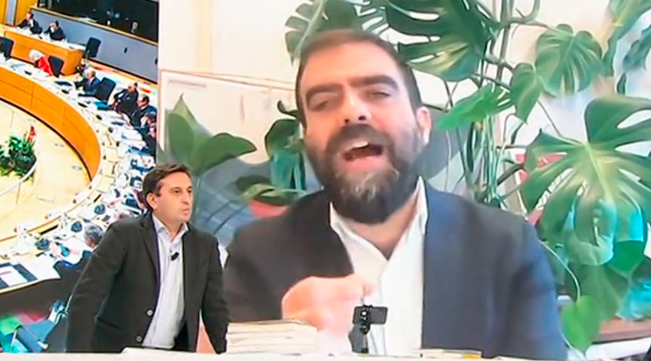 Il clima si surriscalda quando Parenzo interrompe il deputato mostrando in diretta le immagini della conferenza stampa di fine anno del presidente russo Vladimir Putin. “Guardi, qui c’è Putin che sbeffeggia l’Europa”, incalza il conduttore.