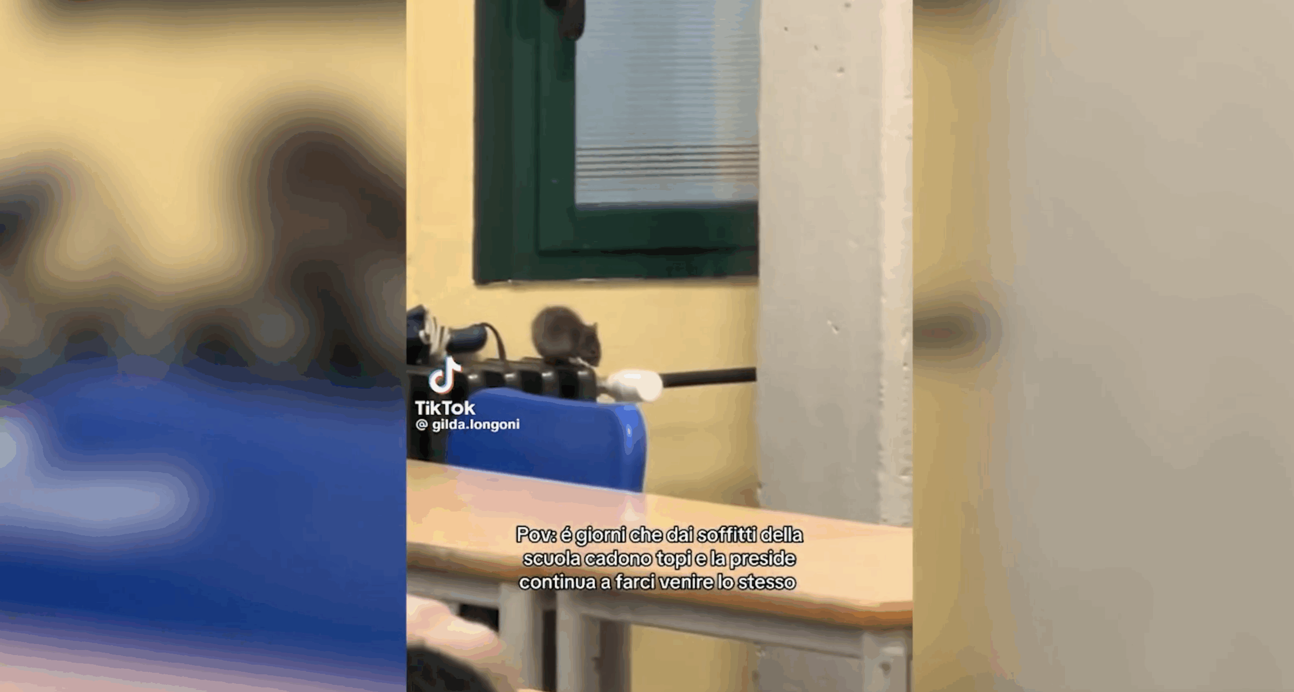 “È giorni che dai soffitti della scuola cadono topi e la preside continua a farci venire lo stesso”. A denunciare l’invasione di ratti su TikTok, con tanto di musica di sottofondo di Ufo Robot, è una studentessa dell’istituto “Montale” di Cinisello Balsamo. Il video, diventato virale sui social network e ancora visibile sul profilo Facebook del gruppo “Sei di Cinisello Balsamo se…”, è inequivocabile: la ragazza filma una compagna che prende il suo materiale didattico e fugge dal suo banco a causa della caduta dall’alto di un sorcio che poi si aggira su un termosifone dell’aula. Non solo. Nel video che dura qualche secondo si vede un topo in un angolo. Una situazione insopportabile per gli studenti che si sono letteralmente visti i roditori piovere dall’alto. “Studiare e lavorare in queste condizioni è inaccettabile”, scrive la studentessa nella sua segnalazione, sottolineando il rischio per la salute pubblica.