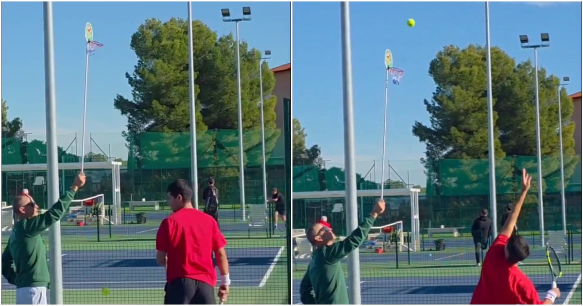 Gli allenamenti di Alcaraz si stanno svolgendo sotto l’occhio attento di Samuel Lopez, suo primo e unico allenatore dopo il divorzio con Juan Carlos Ferrero di qualche giorno fa. Per il momento sarà lui – che era già nello staff del murciano – ad allenarlo, in attesa di capire se sarà una soluzione definitiva o arriverà un’altra figura. E tra gli allenamenti di Lopez c’è una strana esercitazione con un canestro. Nel video in questione si vede Samuel Lopez tenere con un’asta – a un’altezza notevole – un mini–canestro di basket, i classici in miniatura che spesso si appendono in camera.