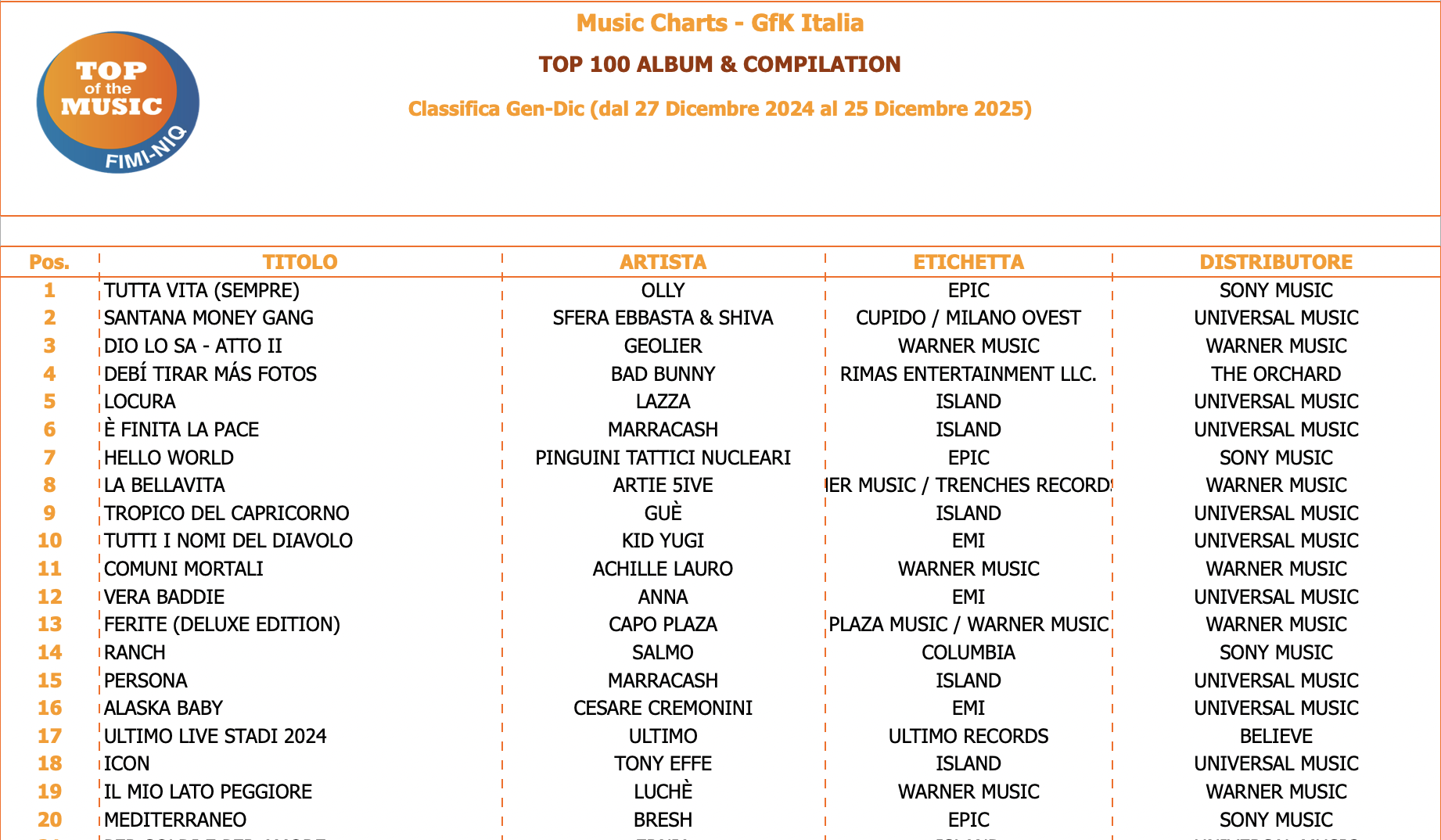 Nel 2025 il peso dei formati si distribuisce tra CD (50,7%), vinili (47,1%) e una quota residuale di musicassette e altri supporti fisici (2,2%)