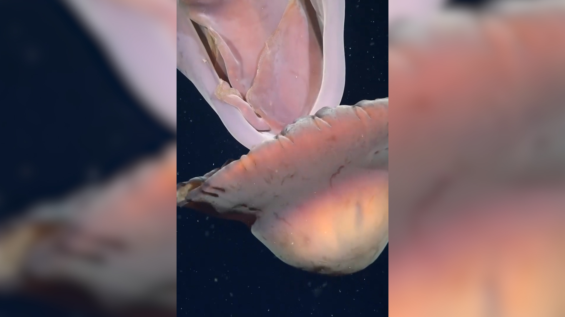 Durante un’immersione per esplorare il muro del canyon sottomarino Colorado-Rawson, i piloti del veicolo telecomandato SuBastian hanno filmato una gigantesca medusa fantasma, o Stygiomedusa gigantea. Il raro avvistamento è avvenuto al largo dell’Argentina a 253 metri di profondità. La medusa misura circa un metro di larghezza ma i suoi “tentacoli” possono estendersi per oltre 10 metri.