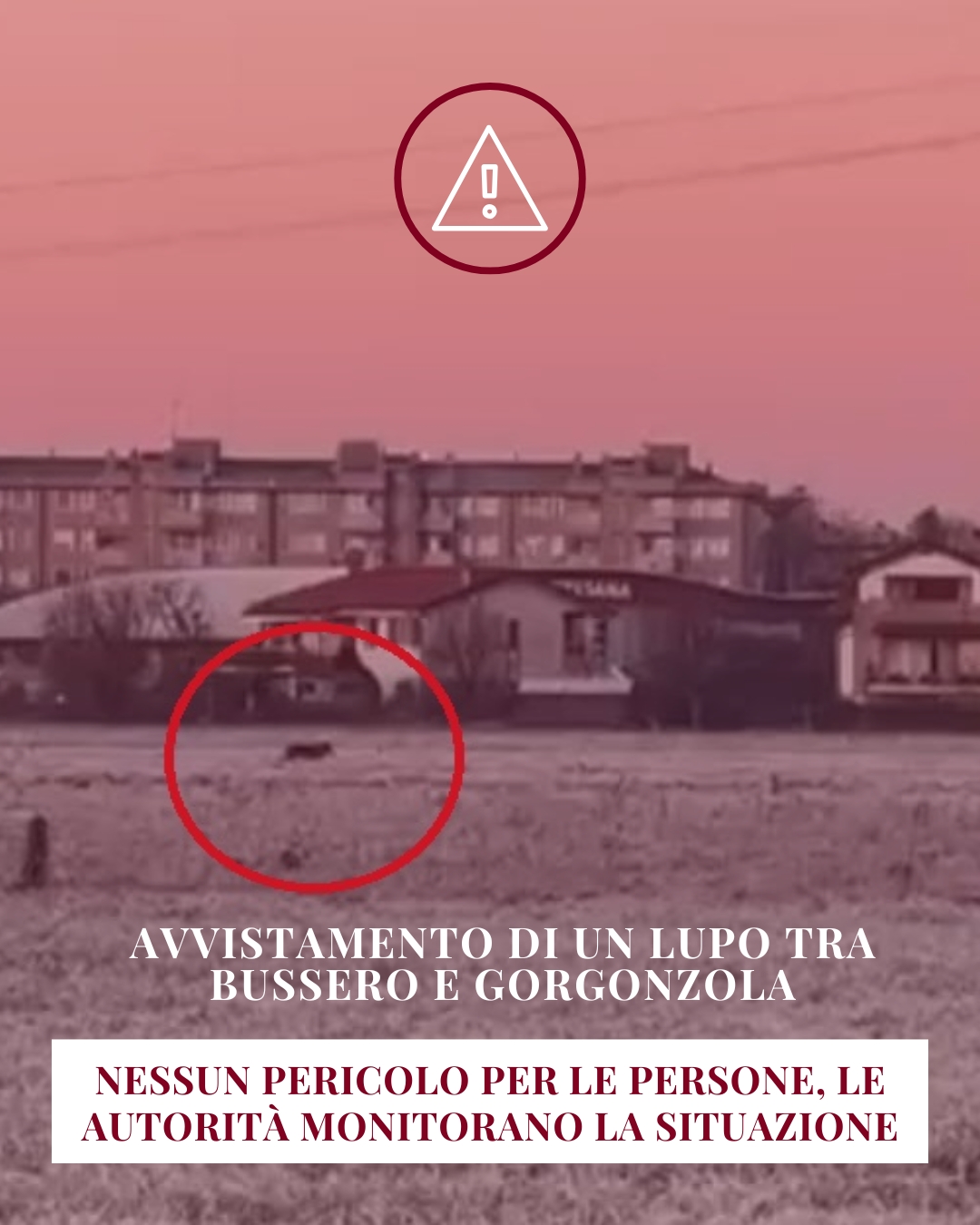 Un educatore e istruttore cinofilo commenta così l’avviso dell’ente comunale: “È un esemplare giovane in dispersione. Quando il branco raggiunge il numero massimo di individui, alcuni giovani di prima generazione si allontanano dal branco e vanno a cercare un compagno/a per formare un nuovo branco, ed è normale che passino anche da zone urbanizzate lungo il tragitto. Non sono un pericolo per noi, ma possono esserlo per cani e gatti domestici”.
