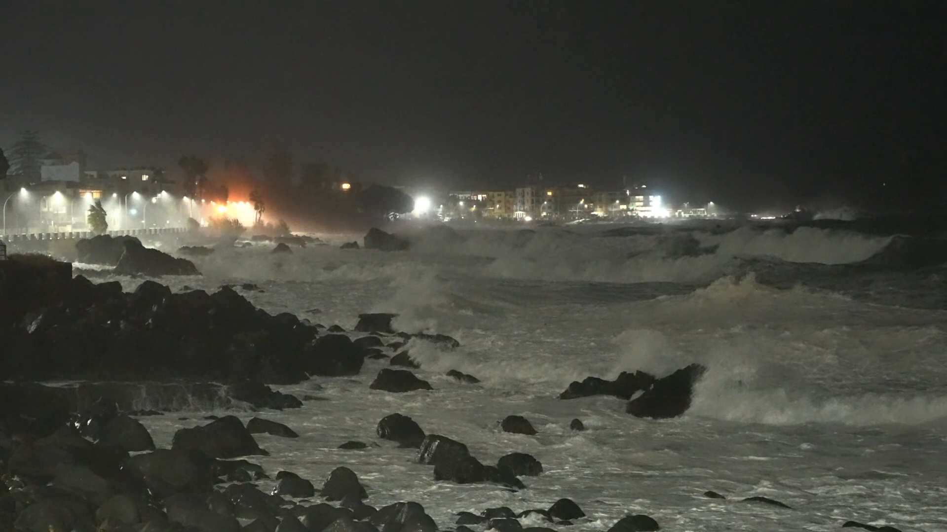 È allerta rossa in Sicilia, Sardegna e Calabria per il ciclone Harry, il cui picco è previsto per oggi, martedì 20 gennaio. La tempesta di vento presenta raffiche superiori ai 110-120/km all’ora, forti piogge e mareggiate lungo le coste esposte, motivo per cui la Protezione civile ha emesso l’allerta rossa nelle tre regioni. Una situazione di emergenza che dovrebbe attenuarsi da mercoledì. Si tratta dell’effetto di un vortice di bassa pressione tra il Canale di Sardegna e le coste della Tunisia, che ha investito in pieno le isole maggiori e la Calabria. Sono attesi accumuli superiori ai 300 millimetri in meno di 48 ore (più di quanto piove in tre mesi) e onde al largo nello Ionio e nel basso Tirreno fino a 8-9 metri, tra i 6 e 7 metri sulle coste della Sardegna orientale e sulla fascia ionica di Sicilia e Calabria. I sindaci dei comuni capoluogo, da Cagliari a Olbia, da Palermo a Catania, da Catanzaro a Reggio Calabria, ma anche in diverse province delle tre regioni, hanno deciso in via precauzionale la chiusura di scuole, università, uffici pubblici, parchi, cimiteri e impianti sportivi. Il video, girato intorno a mezzanotte, mostra la mareggiata ad Aci Castello, in provincia di Catania.