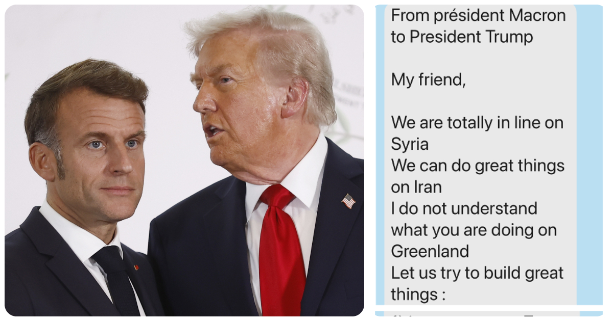 Il capo della Casa Bianca ha anche condiviso sul suo Truth Social quello che sembrano essere alcuni screenshot di un messaggio ricevuto oggi dal capo dell’Eliseo. “Nota dal presidente Macron al presidente Trump – si legge -. Caro amico, siamo perfettamente in linea rispetto alla Siria. Possiamo fare grandi cose sull’Iran. Non capisco quello che stai facendo sulla Groenlandia”. “Posso organizzare una riunione del G7 dopo Davos, a Parigi, giovedì pomeriggio. Posso invitare gli ucraini, i danesi, i siriani e i russi a margine”, scrive ancora Macron. “Ceniamo insieme a Parigi giovedì prima che torni negli Stati Uniti”, termina il messaggio firmato “Emmanuel”.