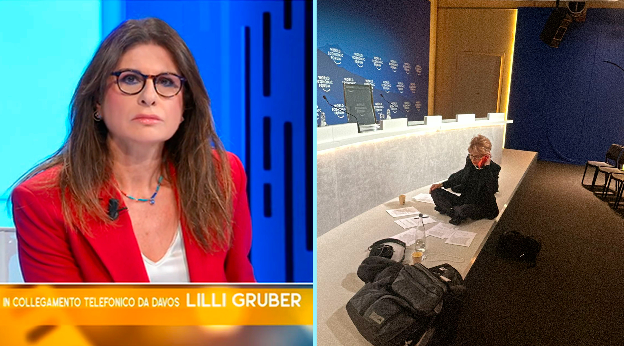 La puntata era iniziata regolarmente: Gruber, in collegamento da Davos, aveva annunciato ospiti e temi della serata, per poi lanciare la sigla e la pubblicità. Al rientro in onda, però, la situazione è apparsa subito anomala. In studio compare soltanto Lina Palmerini, giornalista del Sole 24 Ore, visibilmente impacciata e in difficoltà, costretta a prendere in mano la conduzione di una puntata del tutto improvvisata. Una sorta di trasmissione “autogestita”, come l’ha definita il direttore de Il Fatto Quotidiano Marco Travaglio, ospite in studio insieme a Franco Bernabè, già amministratore delegato di Eni e Telecom e oggi presidente del consiglio d’amministrazione dell’Università di Trento.