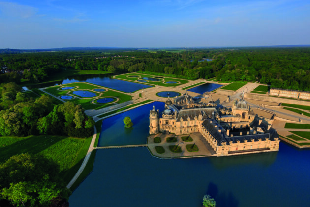 Risalente al Medioevo, il castello passò fra le mani di alcuni dei più grandi e influenti personaggi della storia di Francia: il connestabile di Montmorency (1493-1567), alto funzionario alla corte di Francesco I°, il principe di Condé (1621-1687), cugino di Luigi XIV e grande condottiero militare, il Duca di Aumale (1822-1897), figlio del re Luigi Filippo suo ultimo illustre proprietario prima di farne dono nell’1886 all’Institut de France. Persino l’Aga Khan (1936-1925) in persona se ne invaghì a tal punto che decise di sostenere finanziariamente il complesso dal 2015 al 2020, diventando così uno dei suoi più eminenti mecenati.