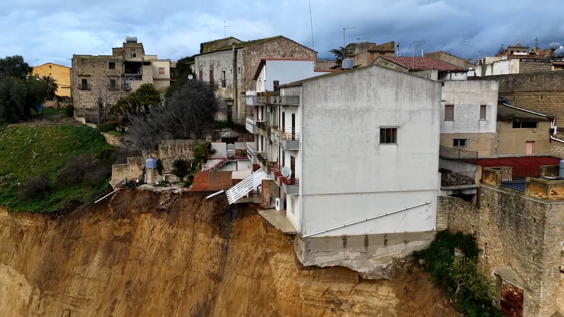 Le impressionanti riprese aeree mostrano la situazione critica delle abitazioni di Niscemi dopo il cedimento del terreno