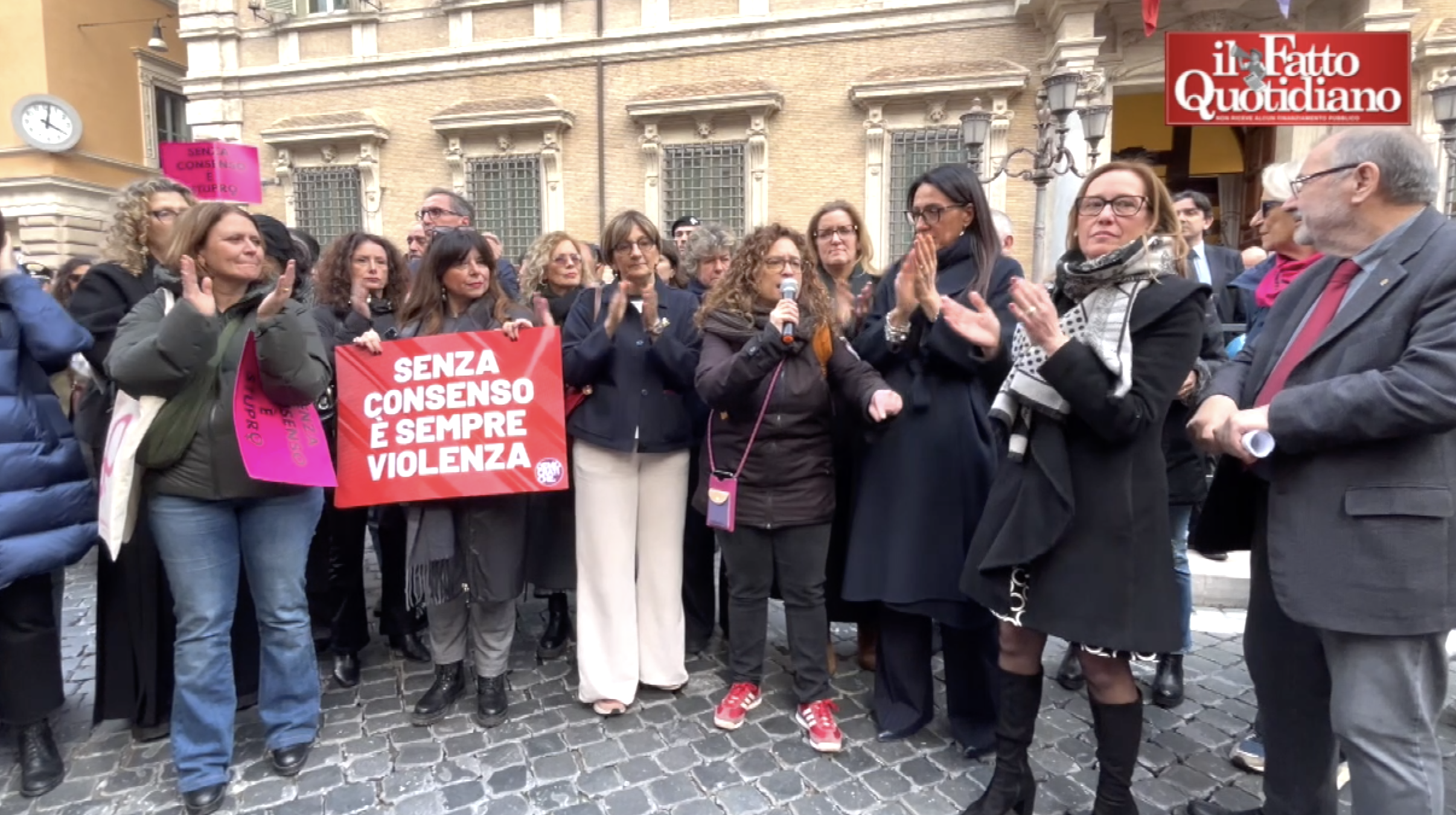 Un centinaio di attiviste, compreso il movimento ‘Non una di meno’, hanno così protestato con cartelli e slogan contro le modifiche al testo a firma della leghista Giulia Bongiorno e contro l’eliminazione del termine ‘consenso’. “Senza consenso è stupro. Non arretreremo, da qui parte una mobilitazione permanente“, hanno rilanciato nel corso della manifestazione, alla quale hanno partecipato anche senatori delle opposizioni, come le esponenti dem Cecilia D’Elia, Laura Boldrini e Valeria Valente, oltre a Ilaria Cucchi e Marilena Grassadonia di Avs.
